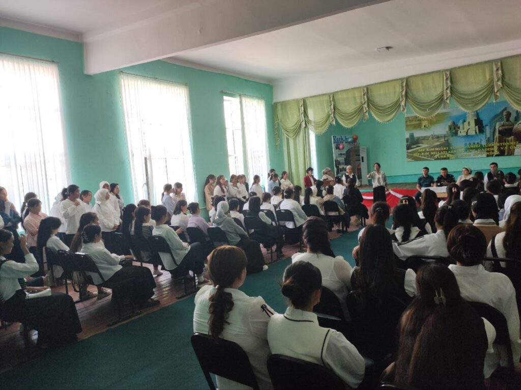 Sardoba tuman politexnikumida o‘quvchi qizlar bilan ta’lim muassasasi ichki tartib qoidalari, kiyinish odobiga rioya qilishi va “Sog‘lom turmush tarzi”ni targ‘ib qilish haqida yig‘ilish o‘tkazildi. Sardoba tuman IIB xodimi S.Mardiyev,Xalqobod MFY mahalla profilaktika inspektori A.Abduxoliqov va xotin-qizlar faoli N.Xamidovalar ishtirok etishdilar.